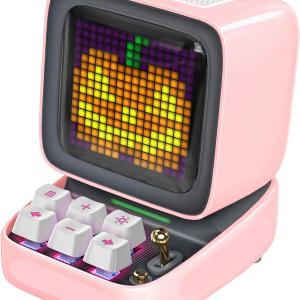 Retro Pixel Art Bluetooth Speaker with 16×16 LED Display (Pink)